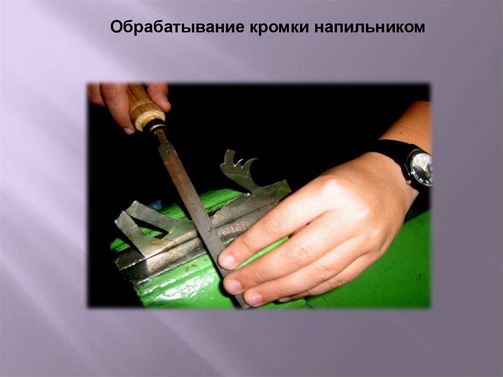 Обрабатывание кромки напильником15.