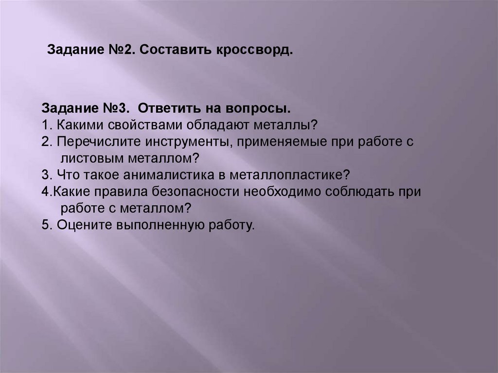 Задание №2. Составить кроссворд.Задание №3. Ответить на вопросы.