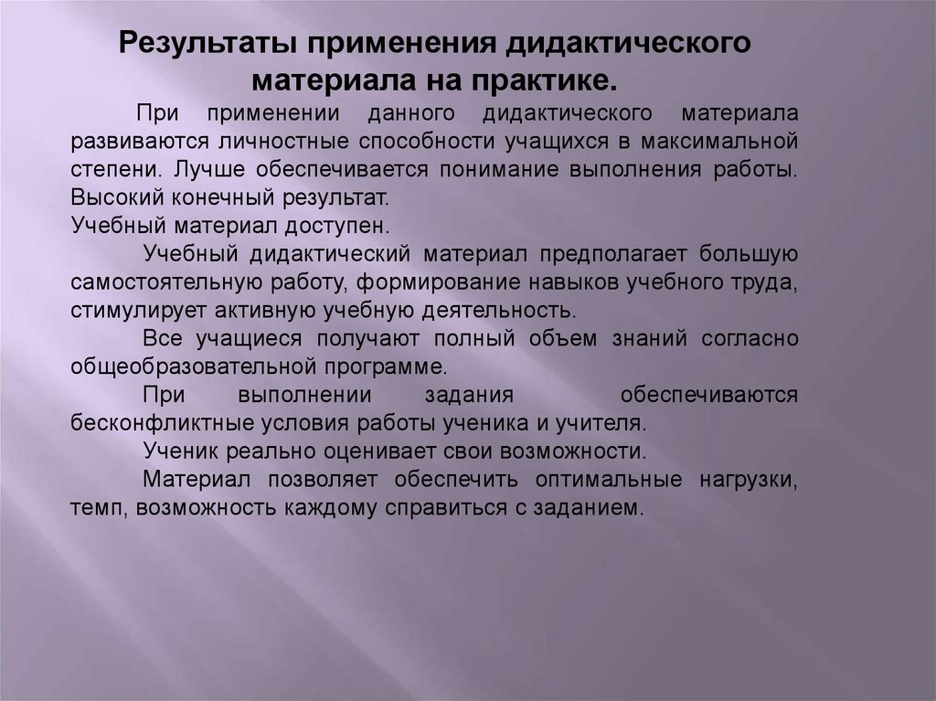 Результаты применения дидактическогоматериала на практике.