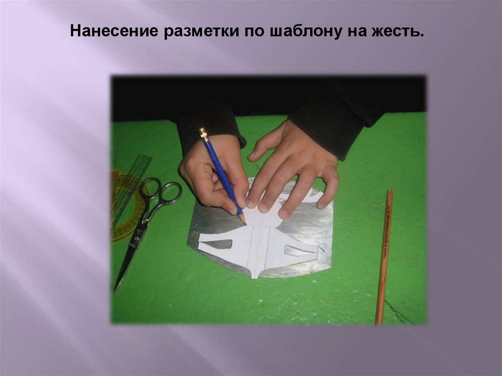 Нанесение разметки по шаблону на жесть.11.