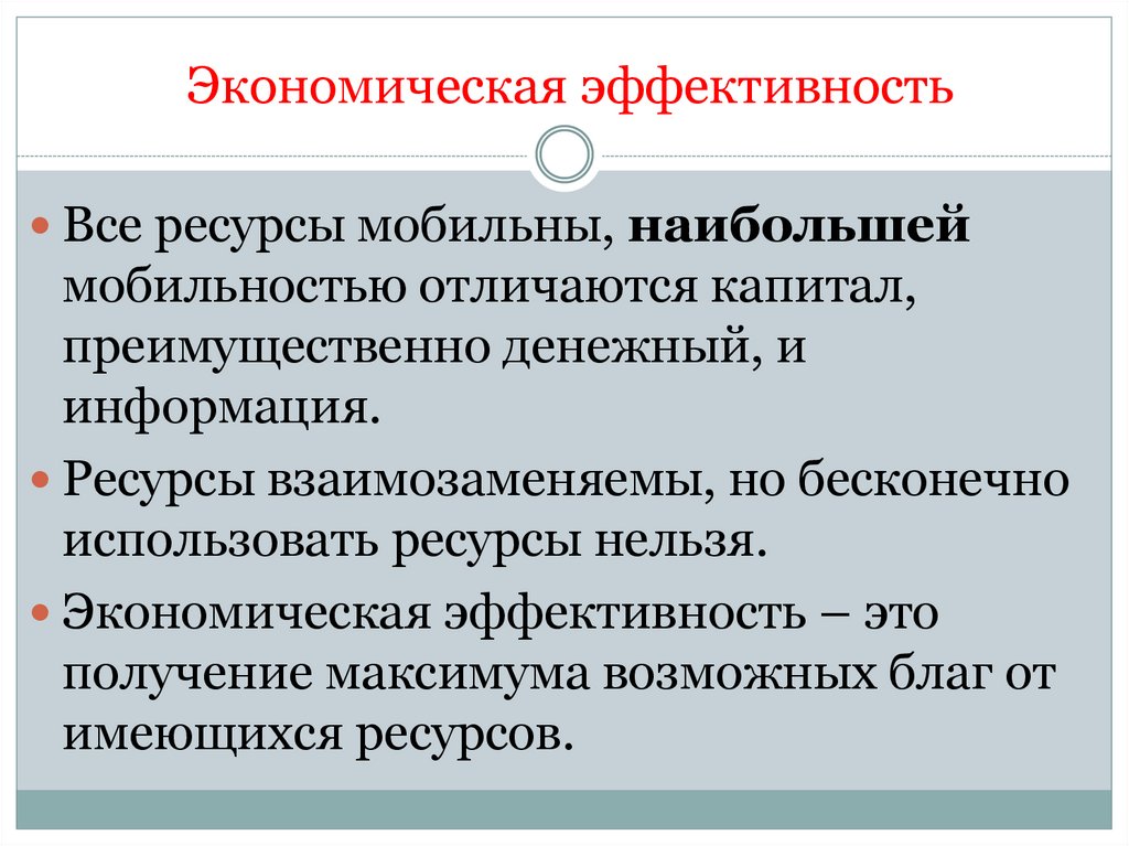 Экономическая эффективностьВсе ресурсы мобильны, наибольшей