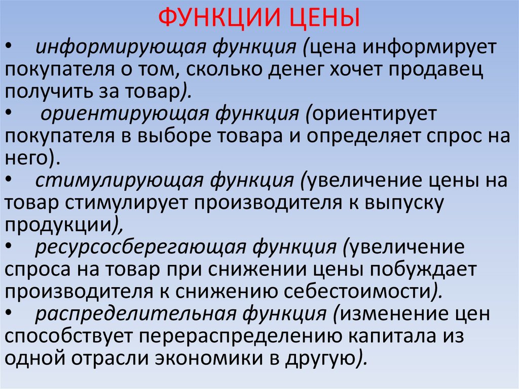 ФУНКЦИИ ЦЕНЫ• информирующая функция (цена информирует