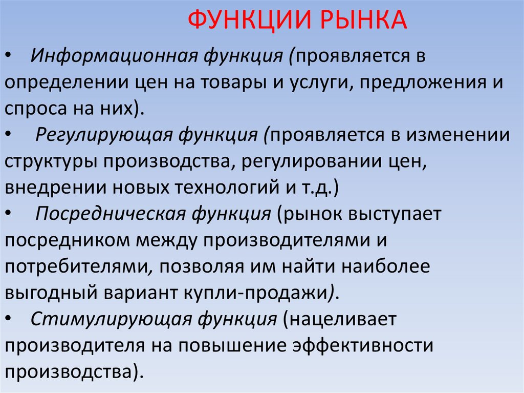 ФУНКЦИИ РЫНКА• Информационная функция (проявляется в