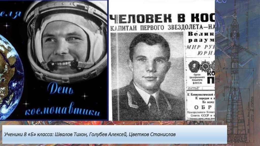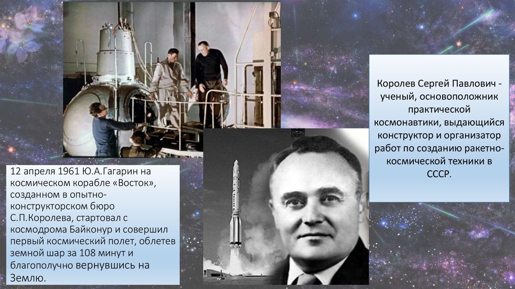 12 апреля 1961 Ю.А.Гагарин накосмическом корабле «Восток»,