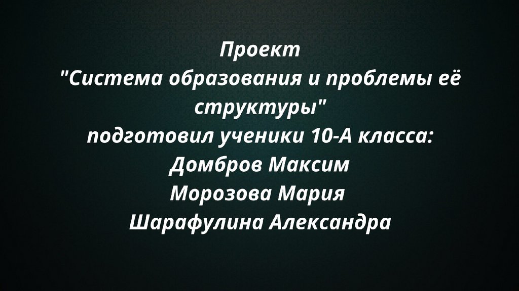 Система образования и проблемы её структуры