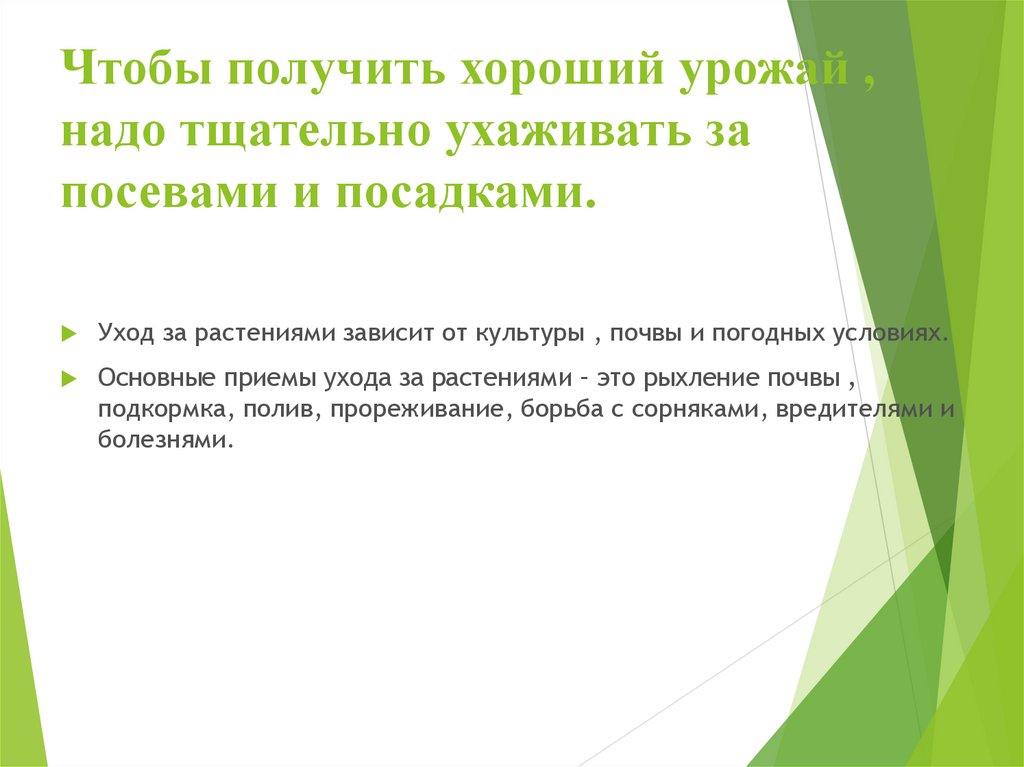 Чтобы получить хороший урожай ,надо тщательно ухаживать за