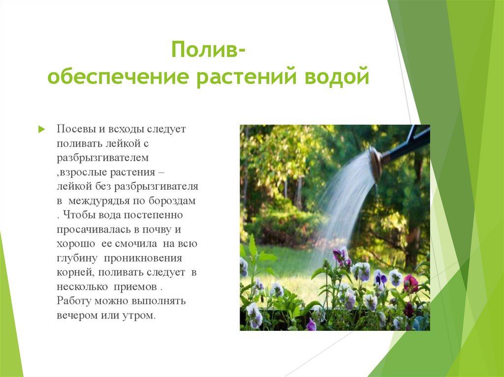 Поливобеспечение растений водойПосевы и всходы следует