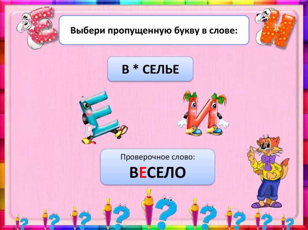 Выбери пропущенную букву в слове:В * СЕЛЬЕ
