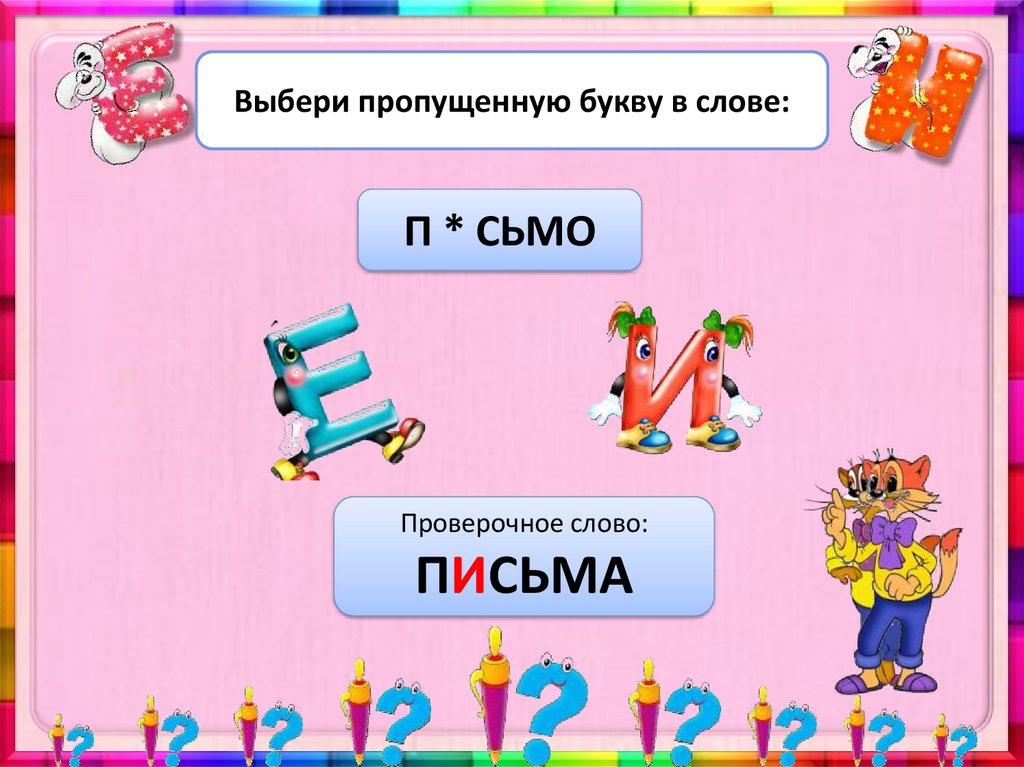 Выбери пропущенную букву в слове:П * СЬМО