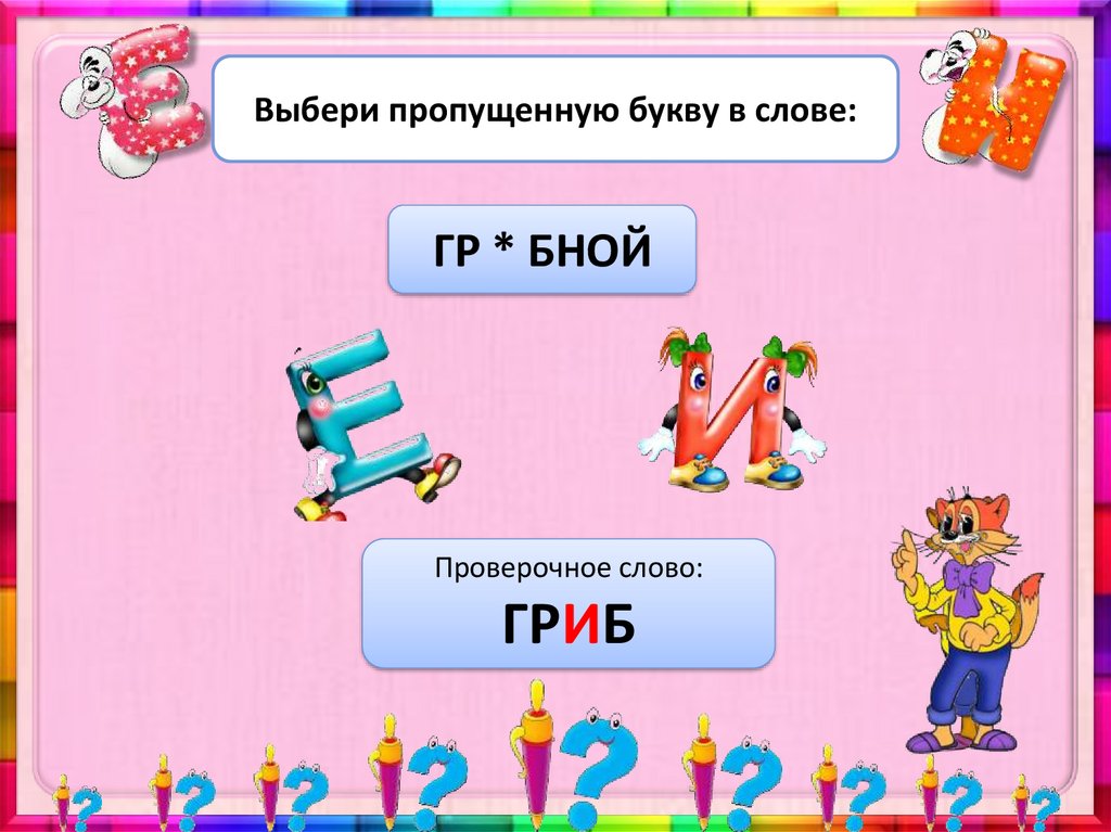 Выбери пропущенную букву в слове:ГР * БНОЙ