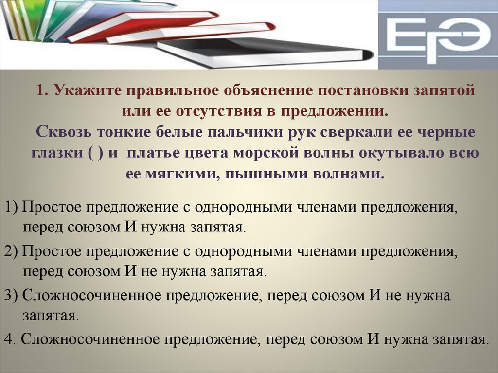1. Укажите правильное объяснение постановки запятойили ее отсутствия в предложении.