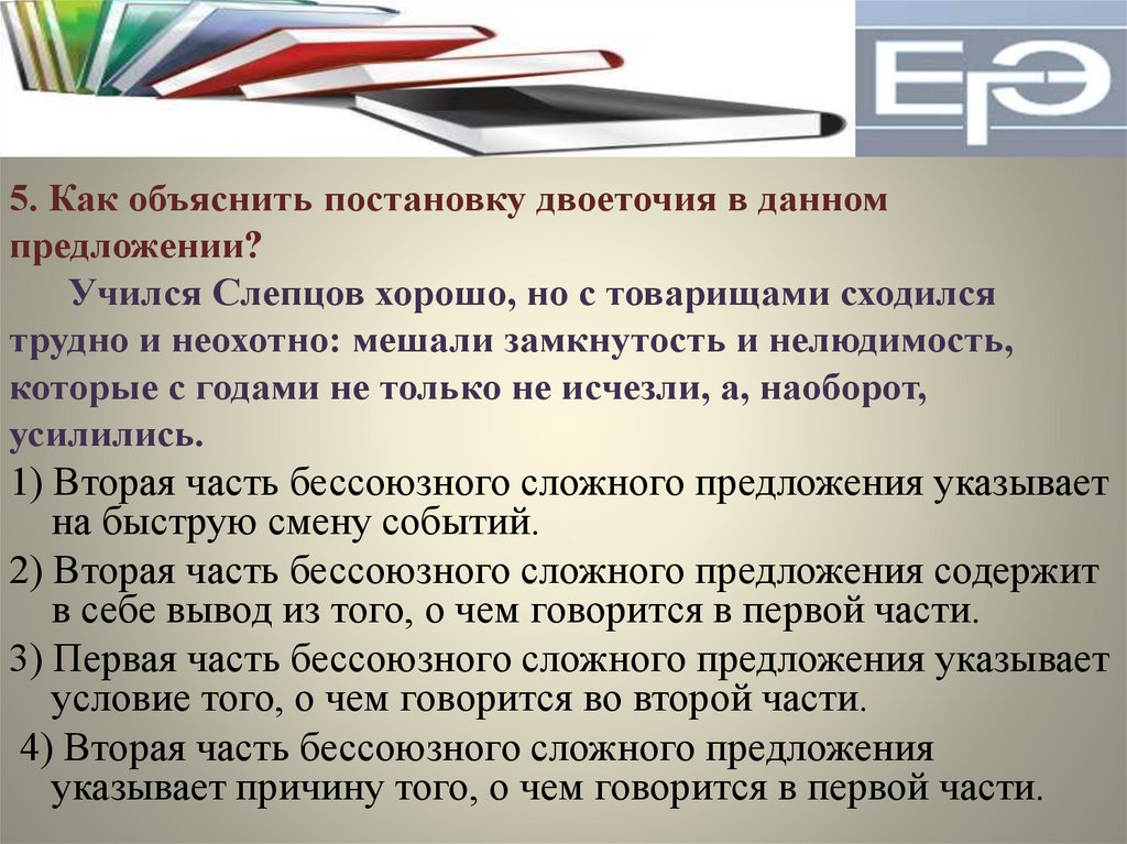 5. Как объяснить постановку двоеточия в данномпредложении?