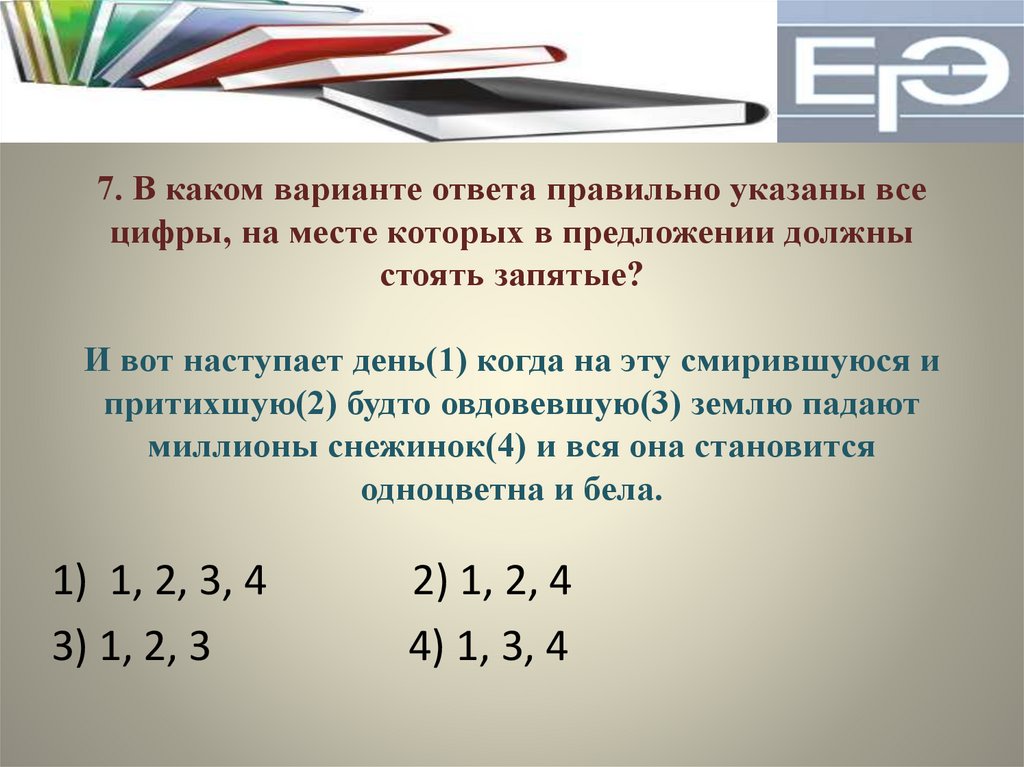 7. В каком варианте ответа правильно указаны всецифры, на месте которых в предложении должны