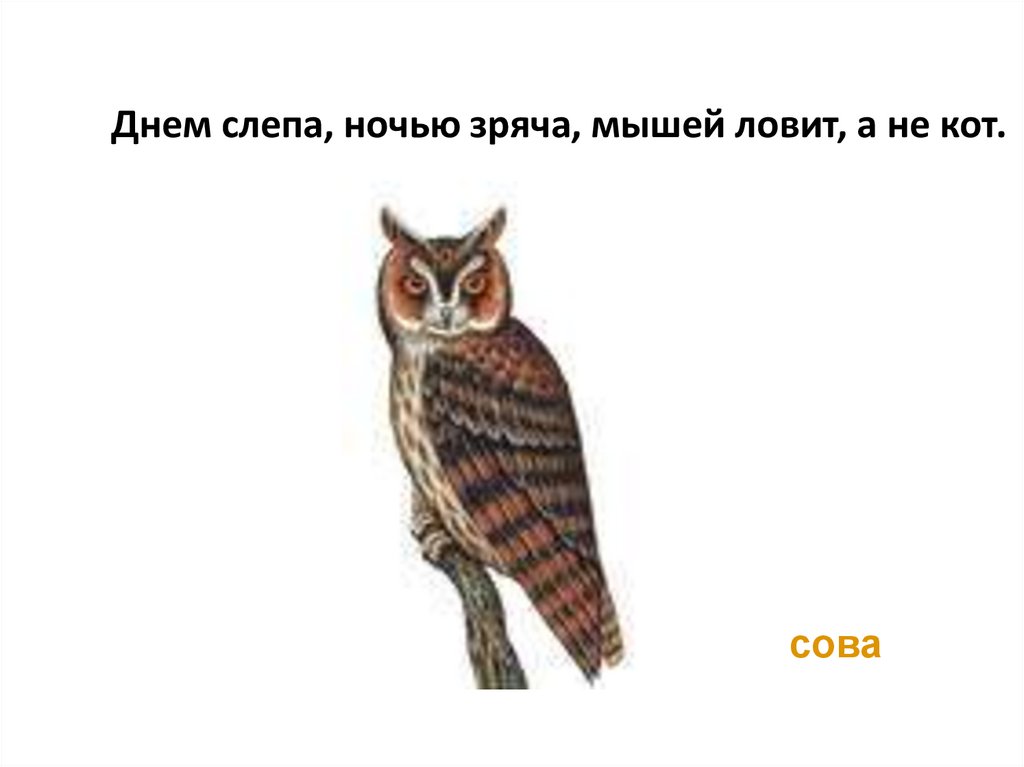 Днем слепа, ночью зряча, мышей ловит, а не кот.сова