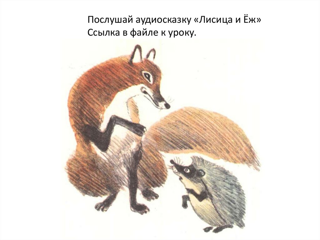 Послушай аудиосказку «Лисица и Ёж»Ссылка в файле к уроку.