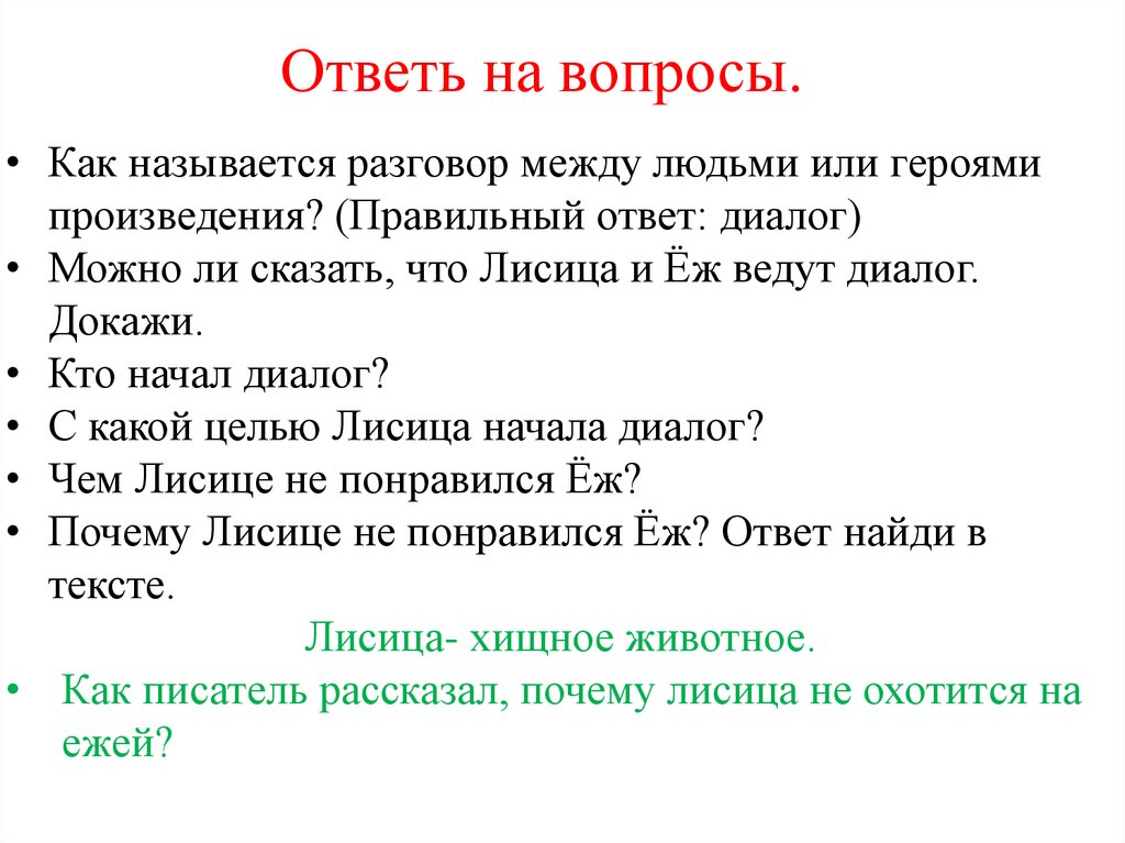 • Почему Лисице не понравился Ёж? Ответ найди в