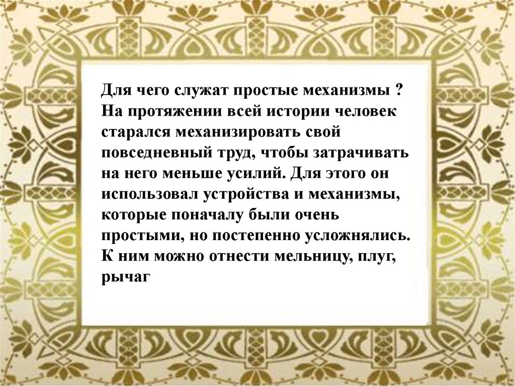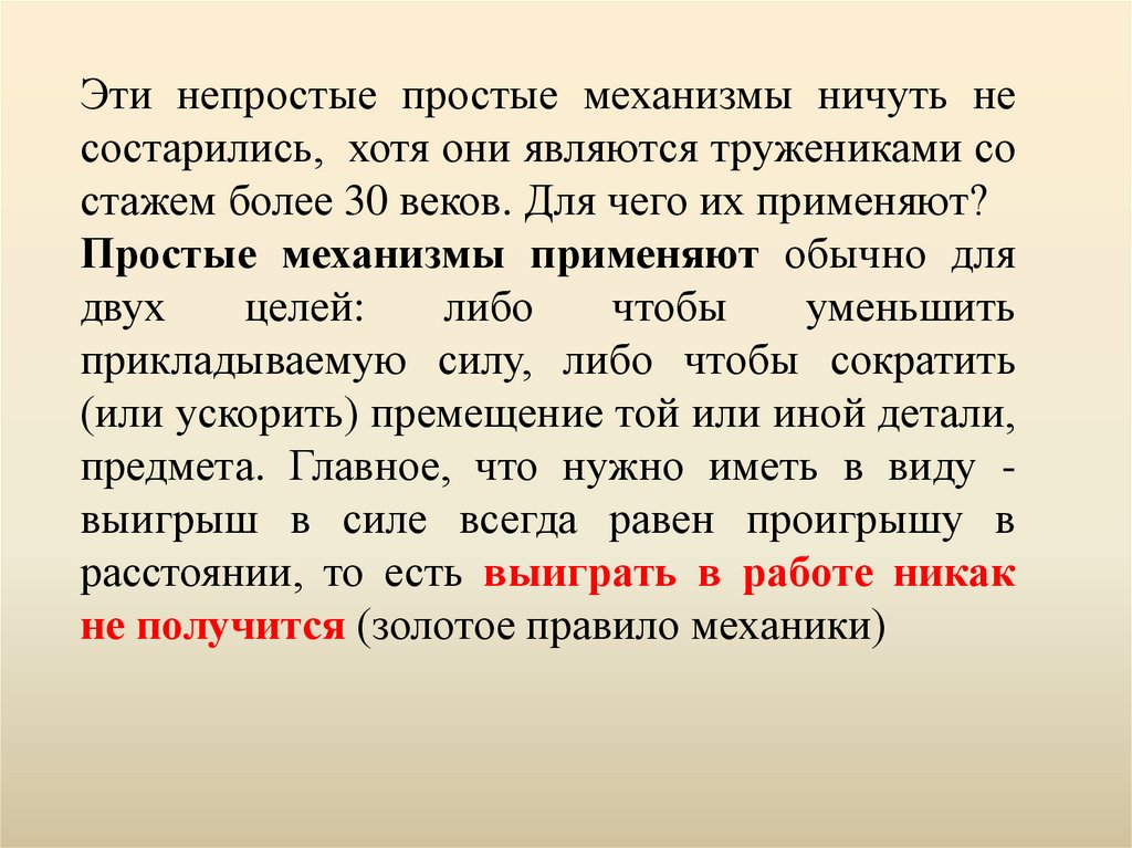 Для чего служат простые механизмы ?На протяжении всей истории человек