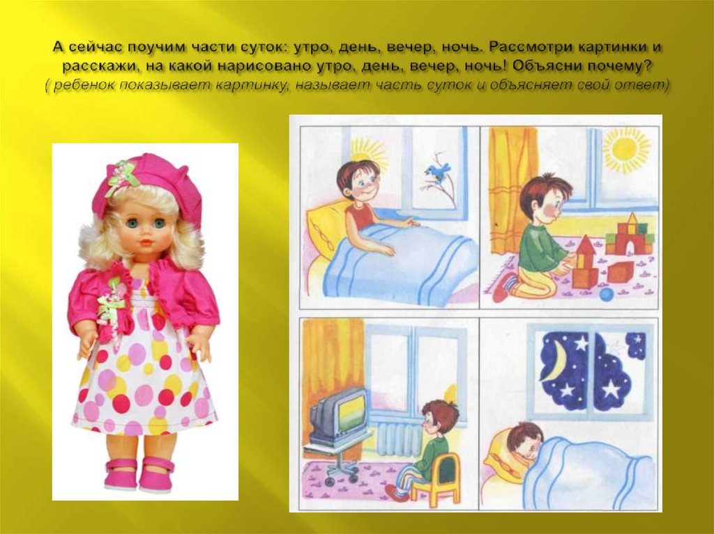 4 Знакомить детей с частями суток ( утро, день,