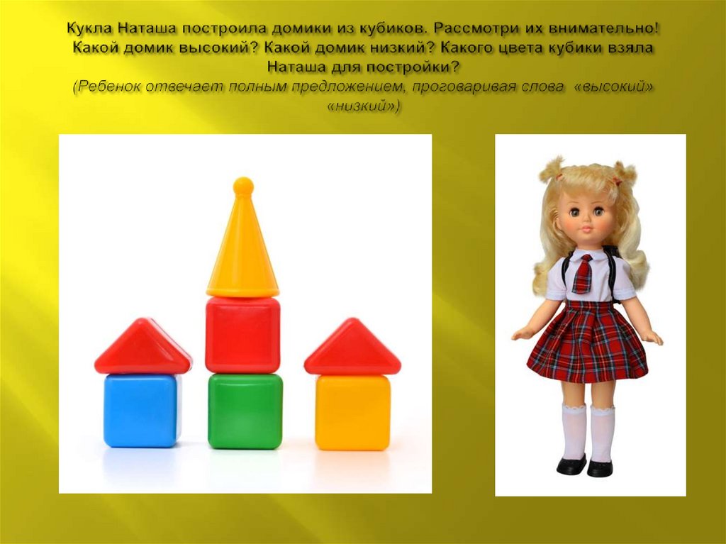 3 Продолжать формировать понятия: высокийнизкий, широкий- узкий, длинный-короткий.
