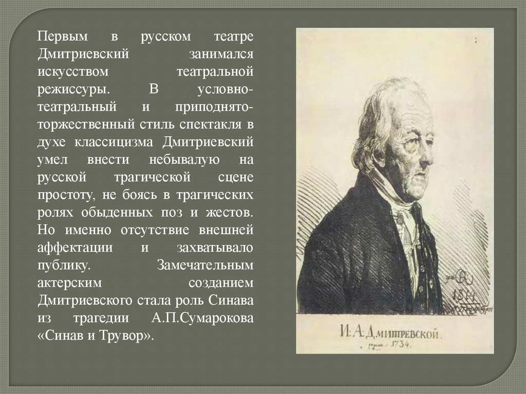 знаменитой комедии «Недоросль». Дмитриевского называли