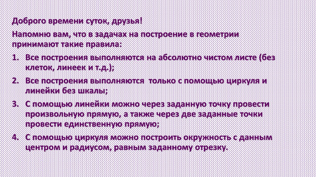 Доброго времени суток, друзья!Напомню вам, что в задачах на построение в геометрии