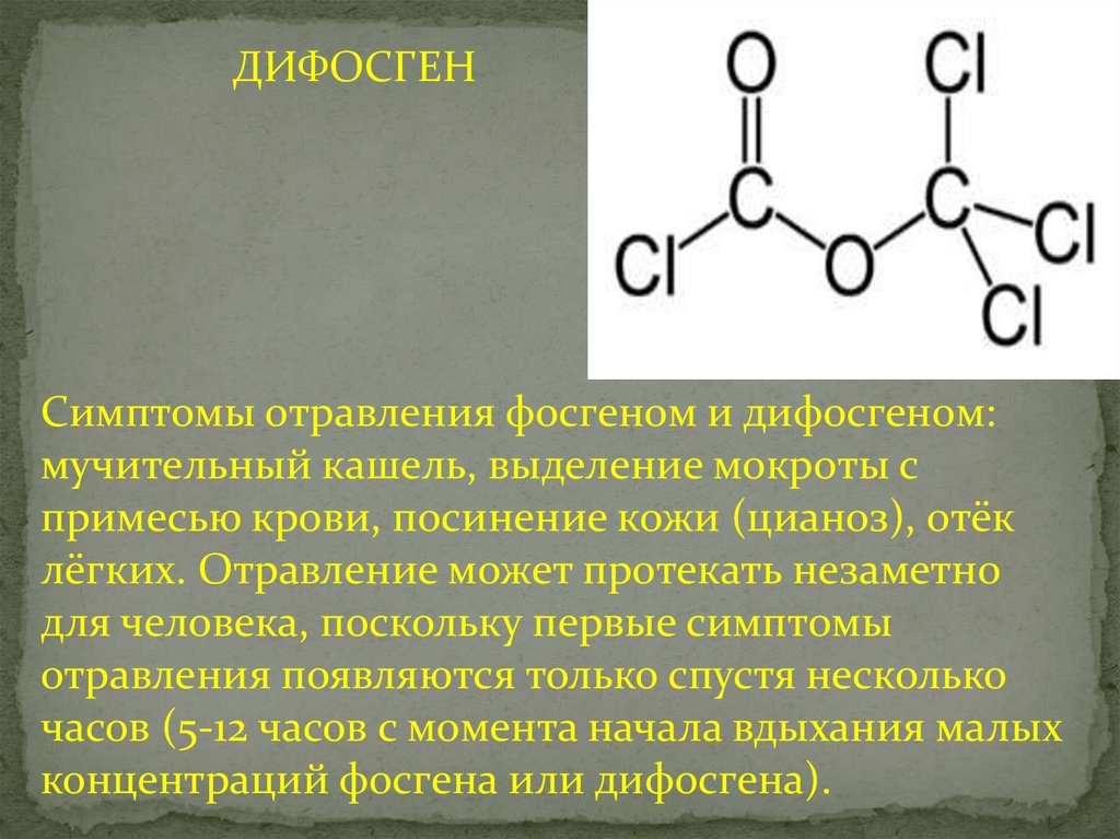ДИФОСГЕНСимптомы отравления фосгеном и дифосгеном: