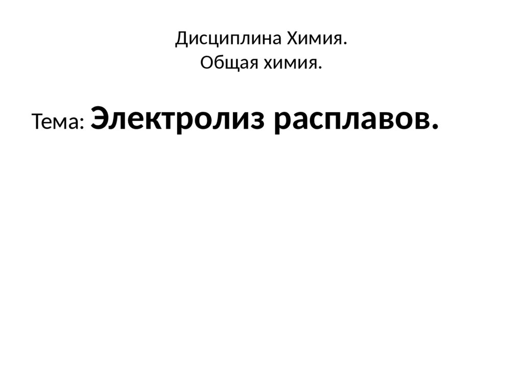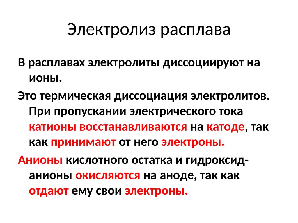 Электролиз расплаваВ расплавах электролиты диссоциируют на