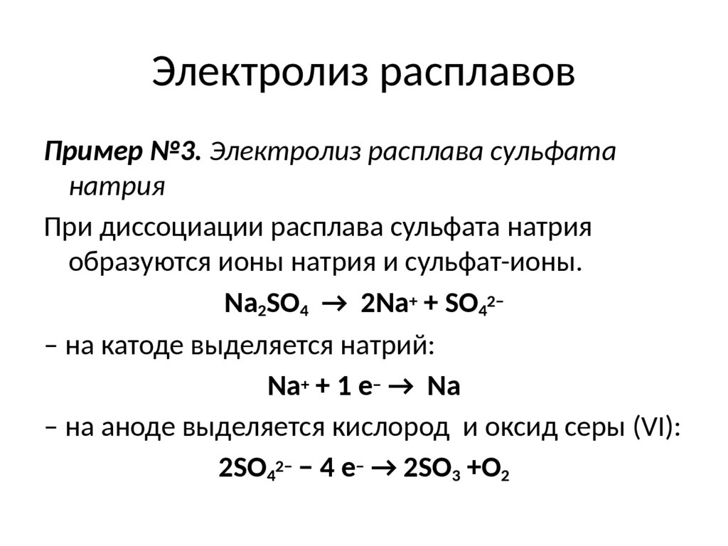 Электролиз расплавовПример №3. Электролиз расплава сульфата