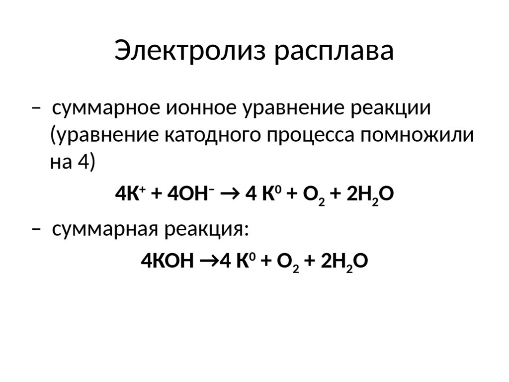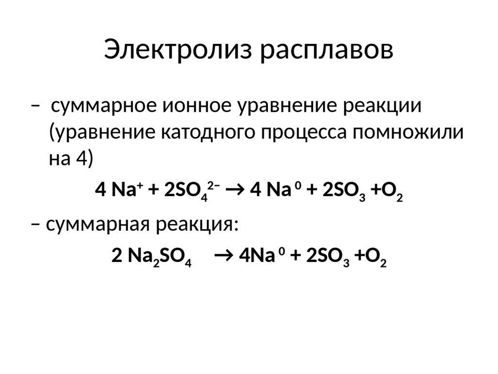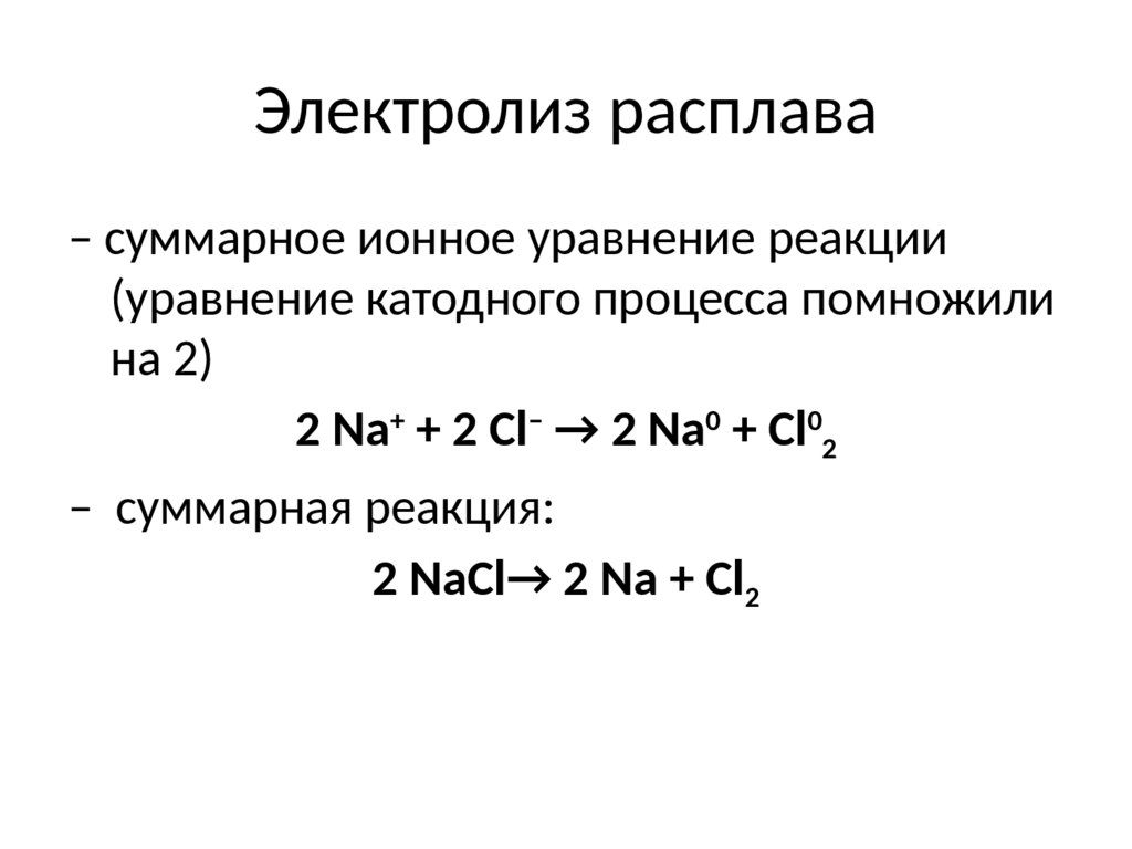 Электролиз расплавов– суммарное ионное уравнение реакции