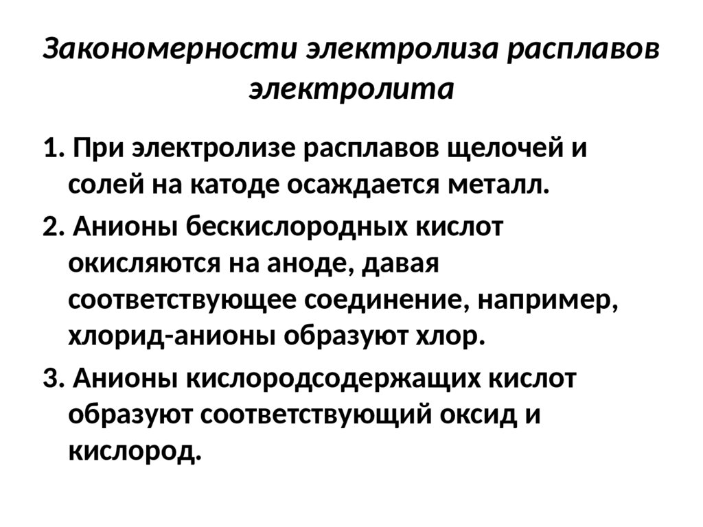 Закономерности электролиза расплавовэлектролита