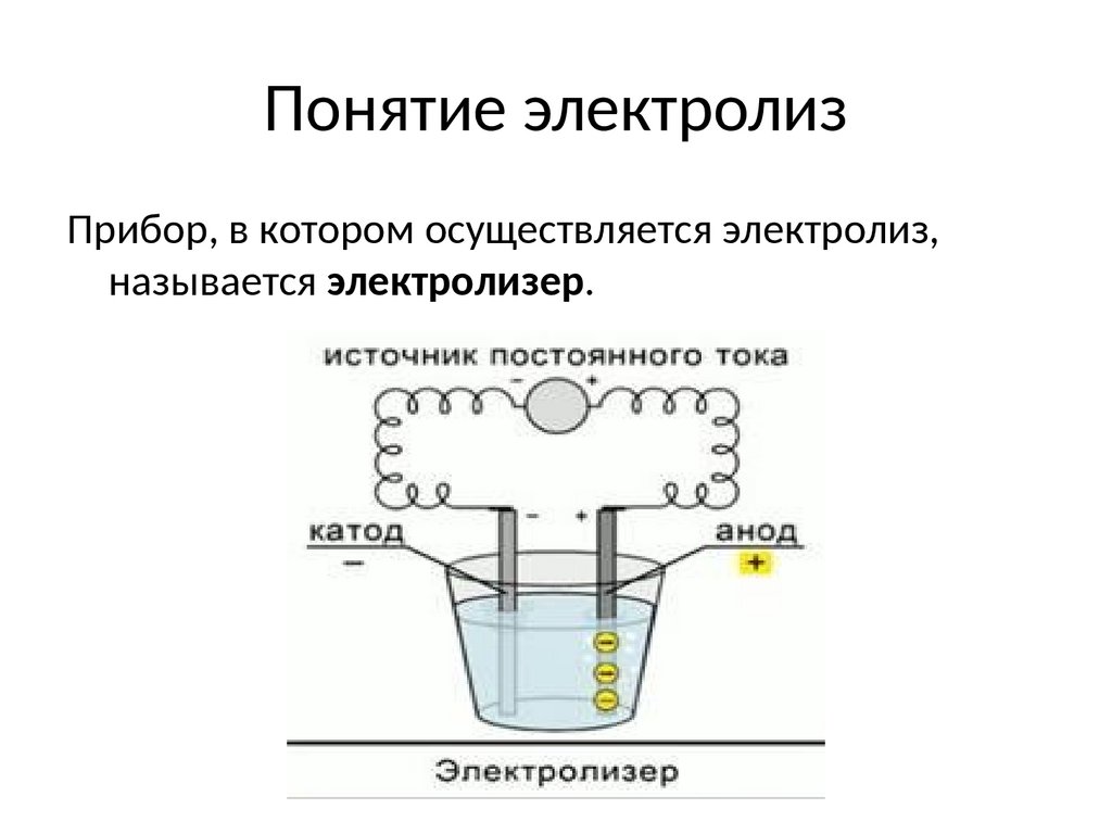 Понятие электролизПрибор, в котором осуществляется электролиз,