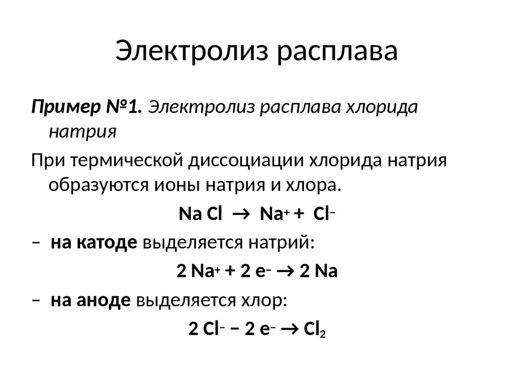 Электролиз расплаваПример №1. Электролиз расплава хлорида