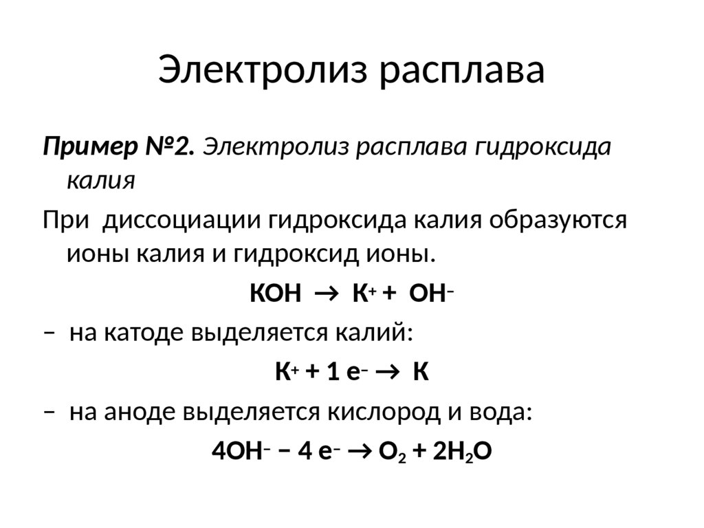 Электролиз расплаваПример №2. Электролиз расплава гидроксида