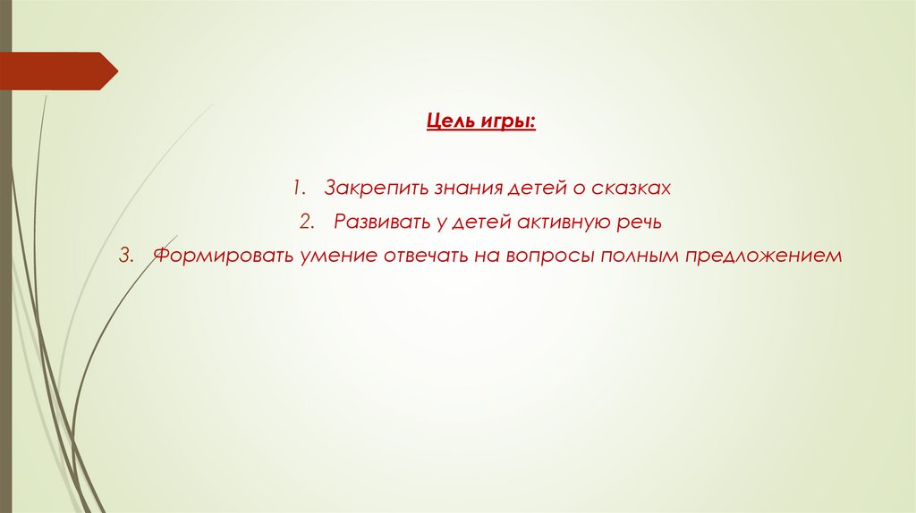 Цель игры:1. Закрепить знания детей о сказках
