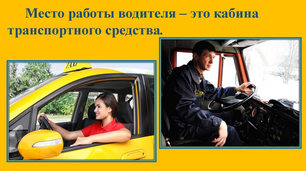 Место работы водителя – это кабинатранспортного средства.
