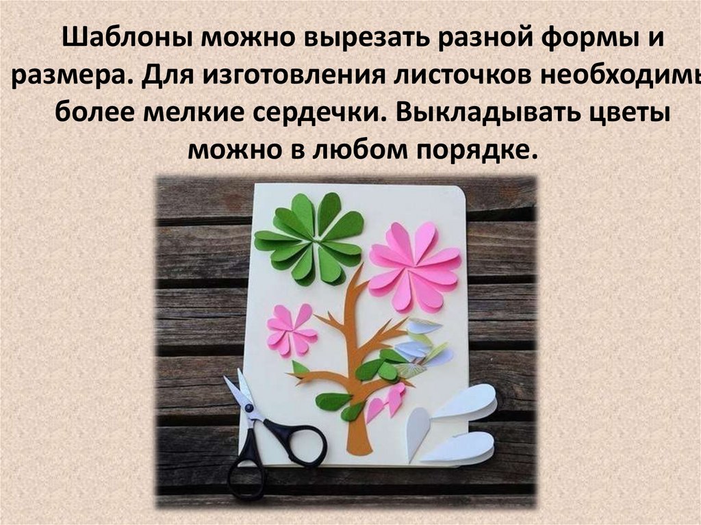 Шаблоны можно вырезать разной формы иразмера. Для изготовления листочков необходимы