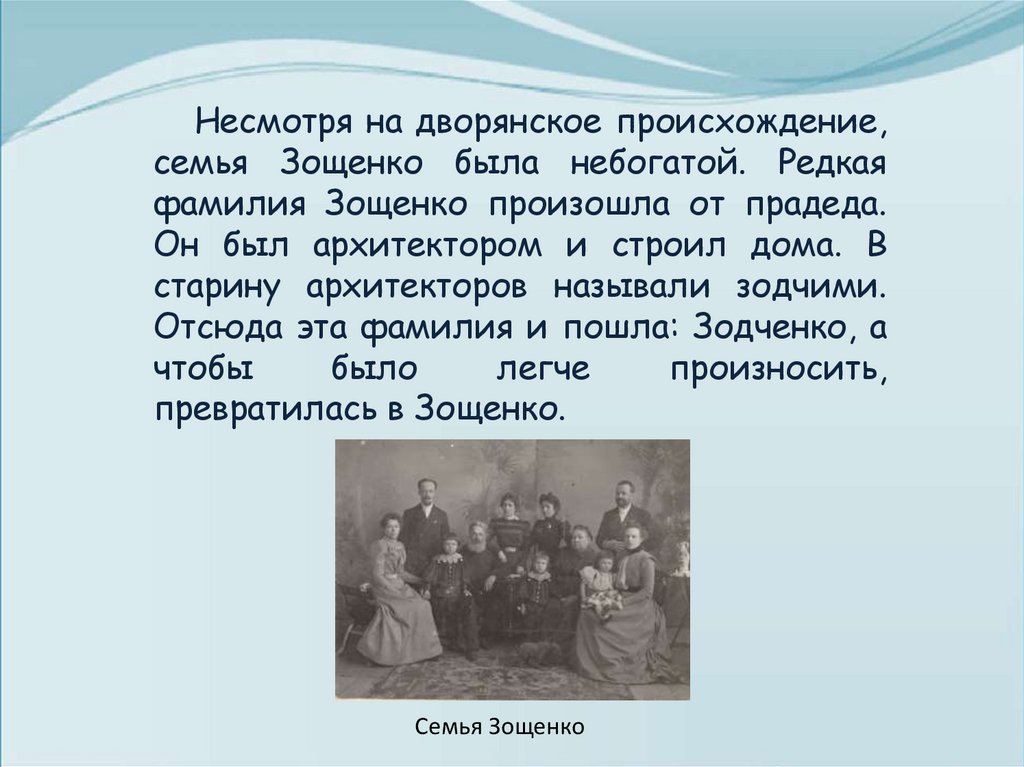 фамилия Зощенко произошла от прадеда.