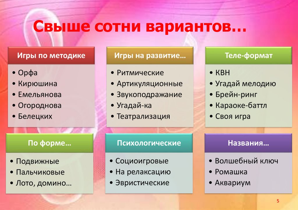 Свыше сотни вариантов…Игры по методике