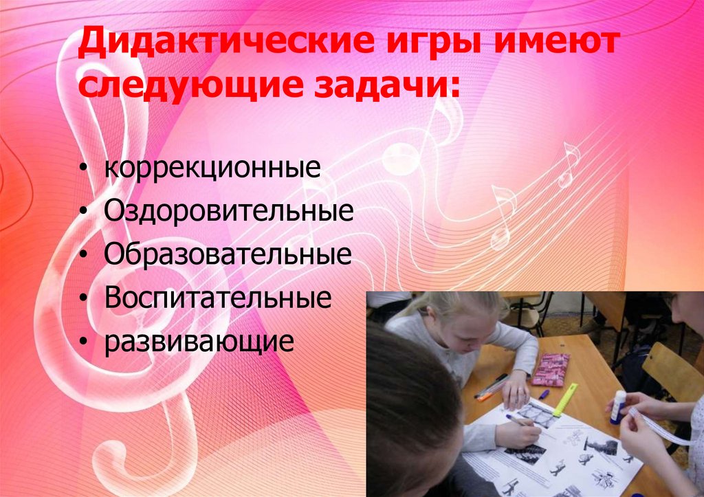 Дидактические игры имеютследующие задачи: