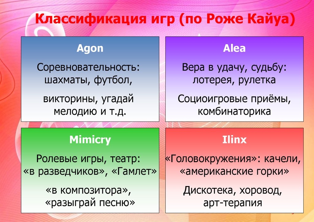 Классификация игр (по Роже Кайуа)Agon