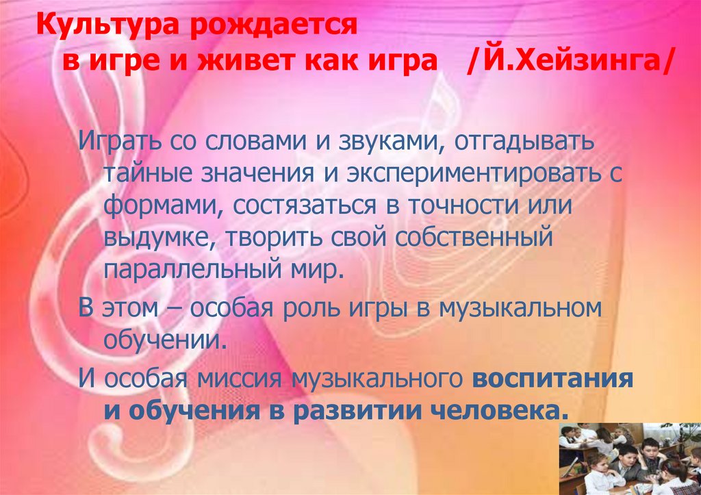 Культура рождаетсяв игре и живет как игра /Й.Хейзинга/