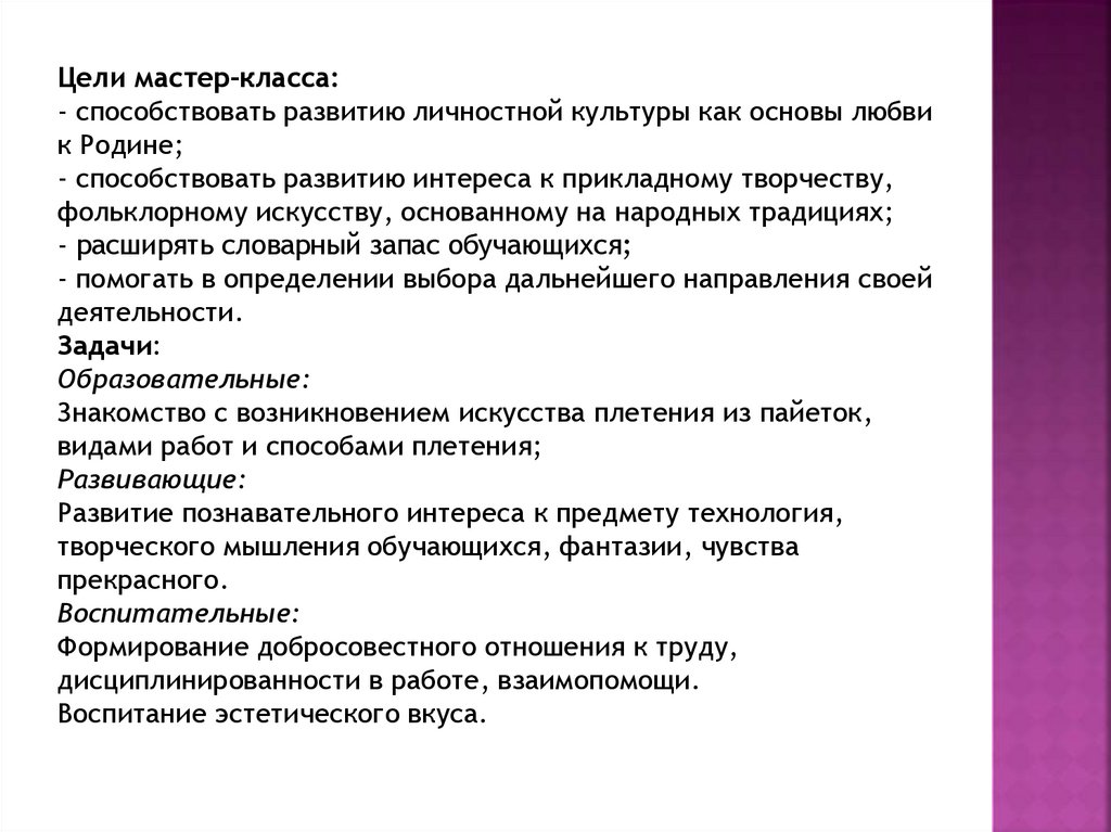Цели мастер-класса:- способствовать развитию личностной культуры как основы любви