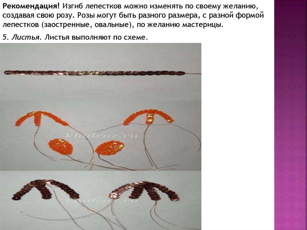 Рекомендация! Изгиб лепестков можно изменять по своему желанию,создавая свою розу. Розы могут быть разного размера, с разной формой
