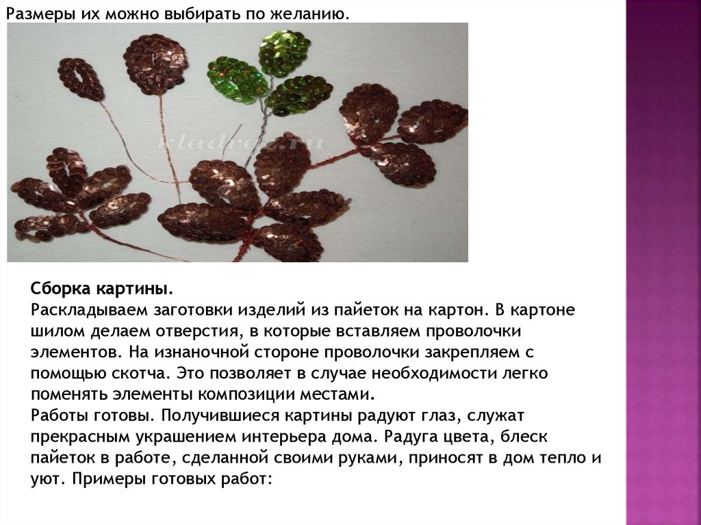 пайеток в работе, сделанной своими руками, приносят в дом тепло и