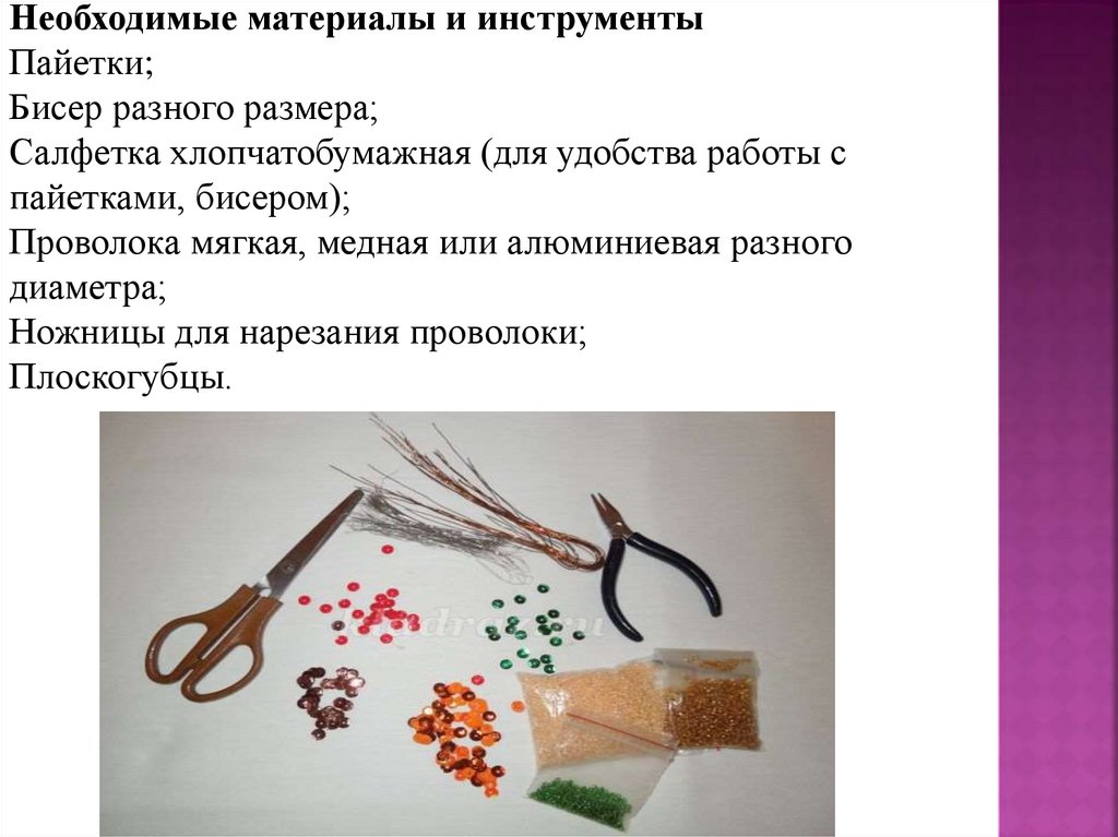 Необходимые материалы и инструментыПайетки;