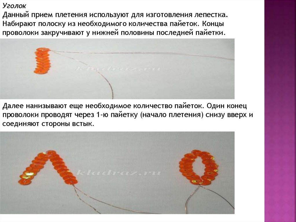 УголокДанный прием плетения используют для изготовления лепестка.