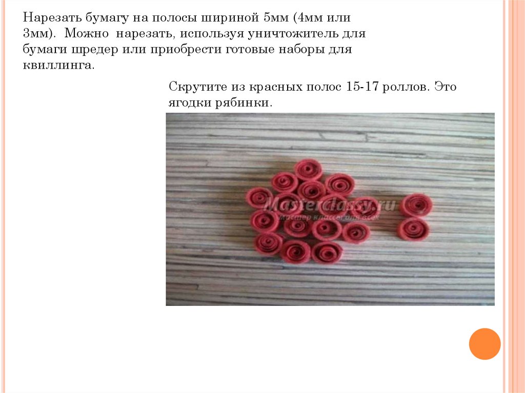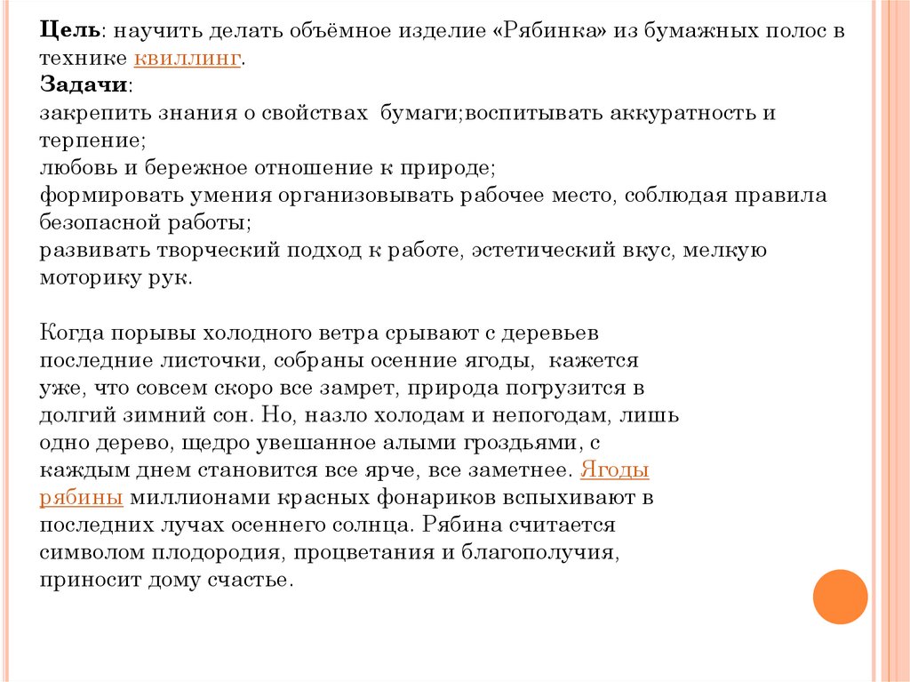 Цель: научить делать объёмное изделие «Рябинка» из бумажных полос втехнике квиллинг.