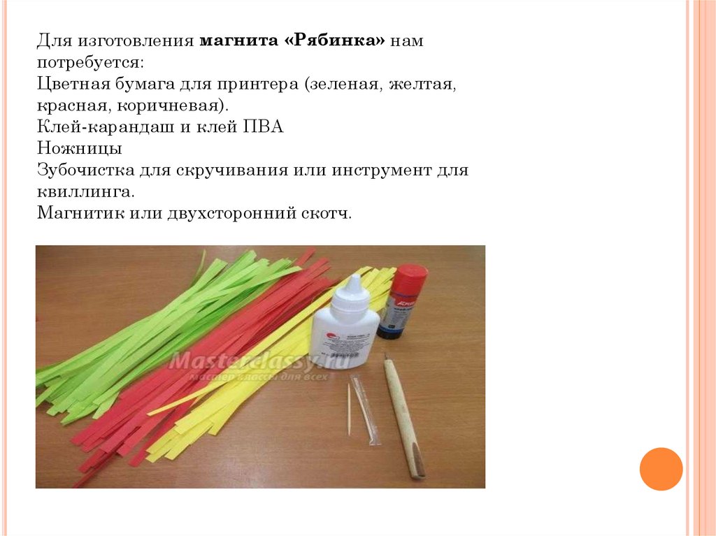Для изготовления магнита «Рябинка» нампотребуется:
