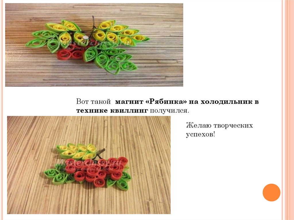 Вот такой магнит «Рябинка» на холодильник втехнике квиллинг получился.