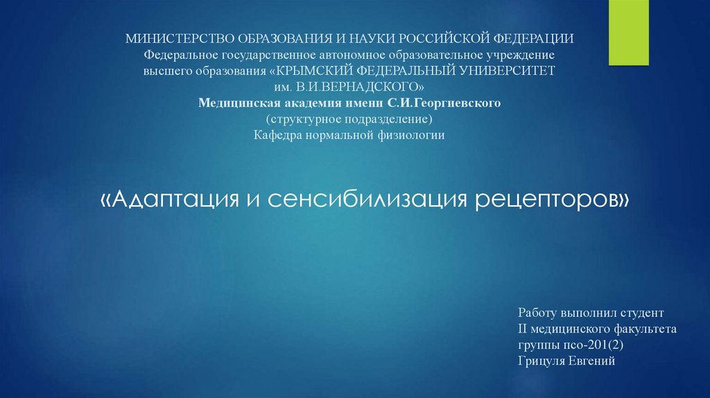 «Адаптация и сенсибилизация рецепторов»